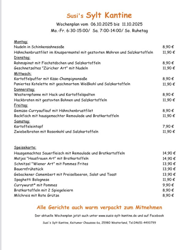 Wochenkarte vom 06.10.2025 bis 11.10.2025